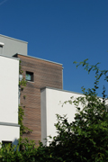 Die Baukörper sind wohl proportioniert und ineinander verschachtelt, was durch unterschiedliche Farbgebung und Material verdeutlicht wird. Innen zieht sich ein Splitlevel Konzept durch die Geschosse! |
