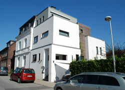 Das Haus liegt am Rande des denkmalgeschützen Bereichs der Kettwiger Altstadt. Deshalb war auch die Auseinandersetzung mit dem zuständigen Bauordnungsamt und der Denkmalbehörde entsprechend intensiv und langwirig. Letzten Endes konnten wir mit unserem modernen Entwurf, als Kontrast zu den Fachwerkhäusern der Kettwiger Altstadt, überzeugen.
